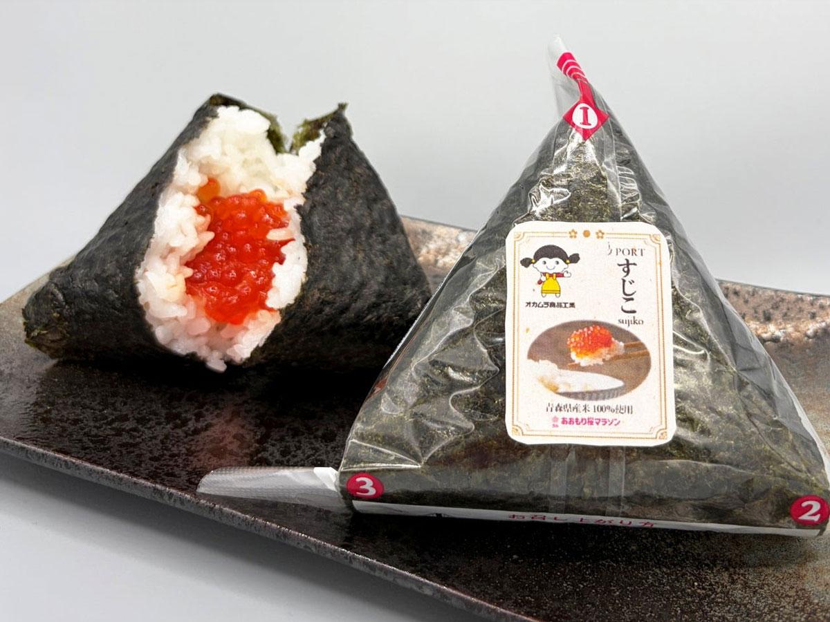 オカムラ食品工業(青森県青森市)が4月19日、「2026あおもり桜マラソン」会場で「すじこおにぎり」を提供する。