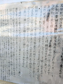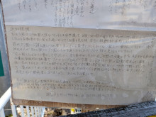 看板には「熊に殺されかけました」「危機一髪・九死に一生・奇跡の命拾い」(原文ママ)とあり、10月3日に自転車で走行中、クマに追いかけられた様子が1000文字以上の文書で手書きされている。追加説明と題した別紙には、「回し読みしてほしい」「勇気を出して臆病者になりましょう」などと書かれている。