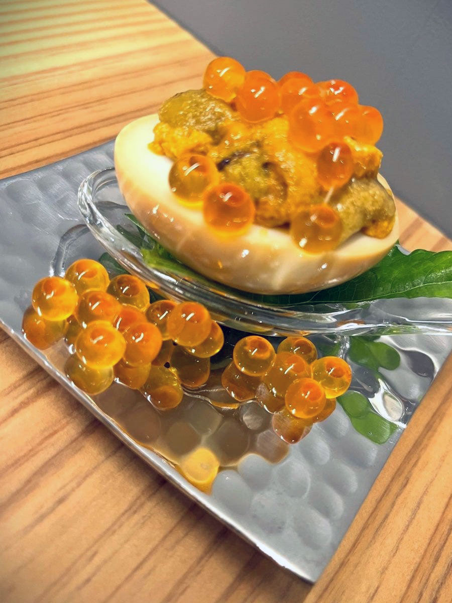 青森・蓬田の「真っ赤卵(まっからん)」にウニを乗せた一品。価格は880円。大粒いくらのせは1,280円