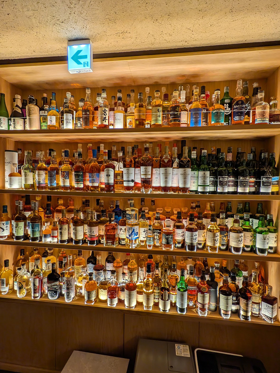 世界各国の約300種のウイスキーを用意する。日本酒やワイン、ビールなどもある