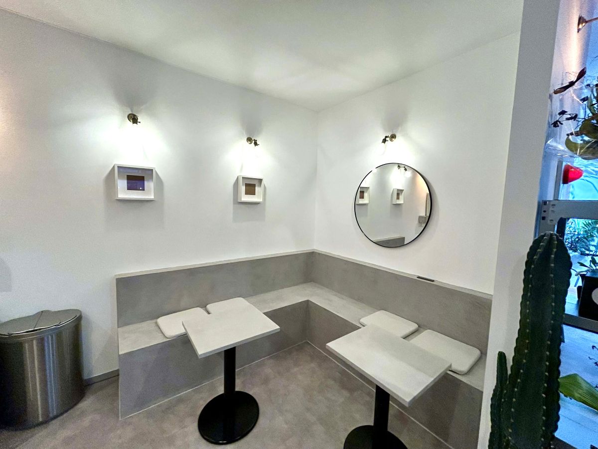 内装には建築資材などの端材を使った。いつも同じ空間ではなく、季節ごとに変化のある内装にするという。額にはアートを飾る予定