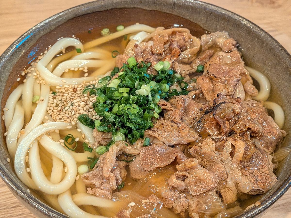 「冷たい」「温かい」「釜」の3種の食べ方があり、同じうどんでも食感が異なり、食べ比べるリピーターがいるという。価格は1,100円