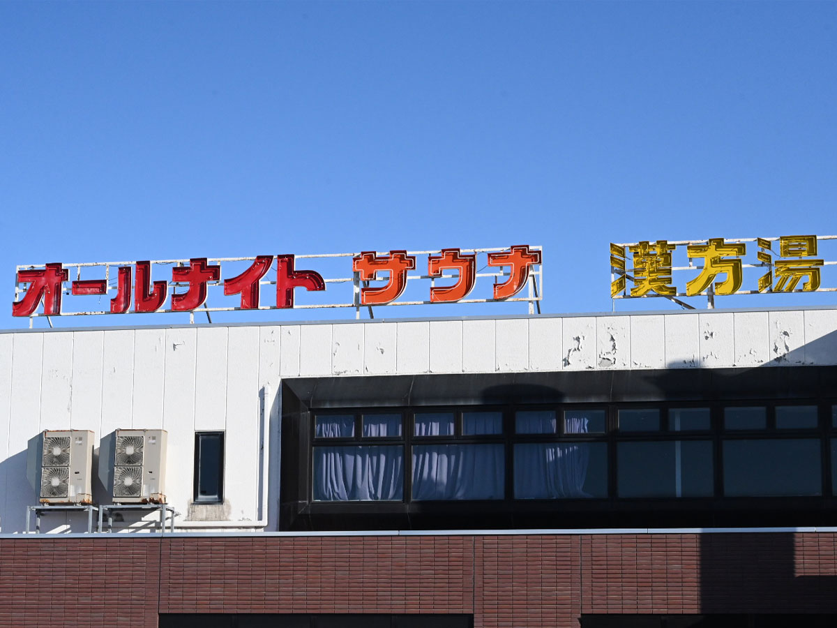 オールナイト、サウナの看板