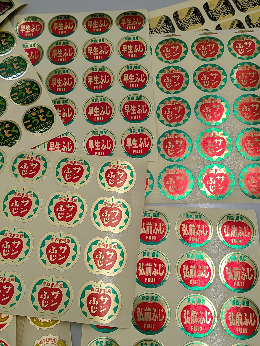 津軽印刷(青森市三内丸山、TEL 017-766-2315)が製造するリンゴの品種が分かるシール「りんごつぶつぶシール」の販売が現在、青森市内で広がっている。