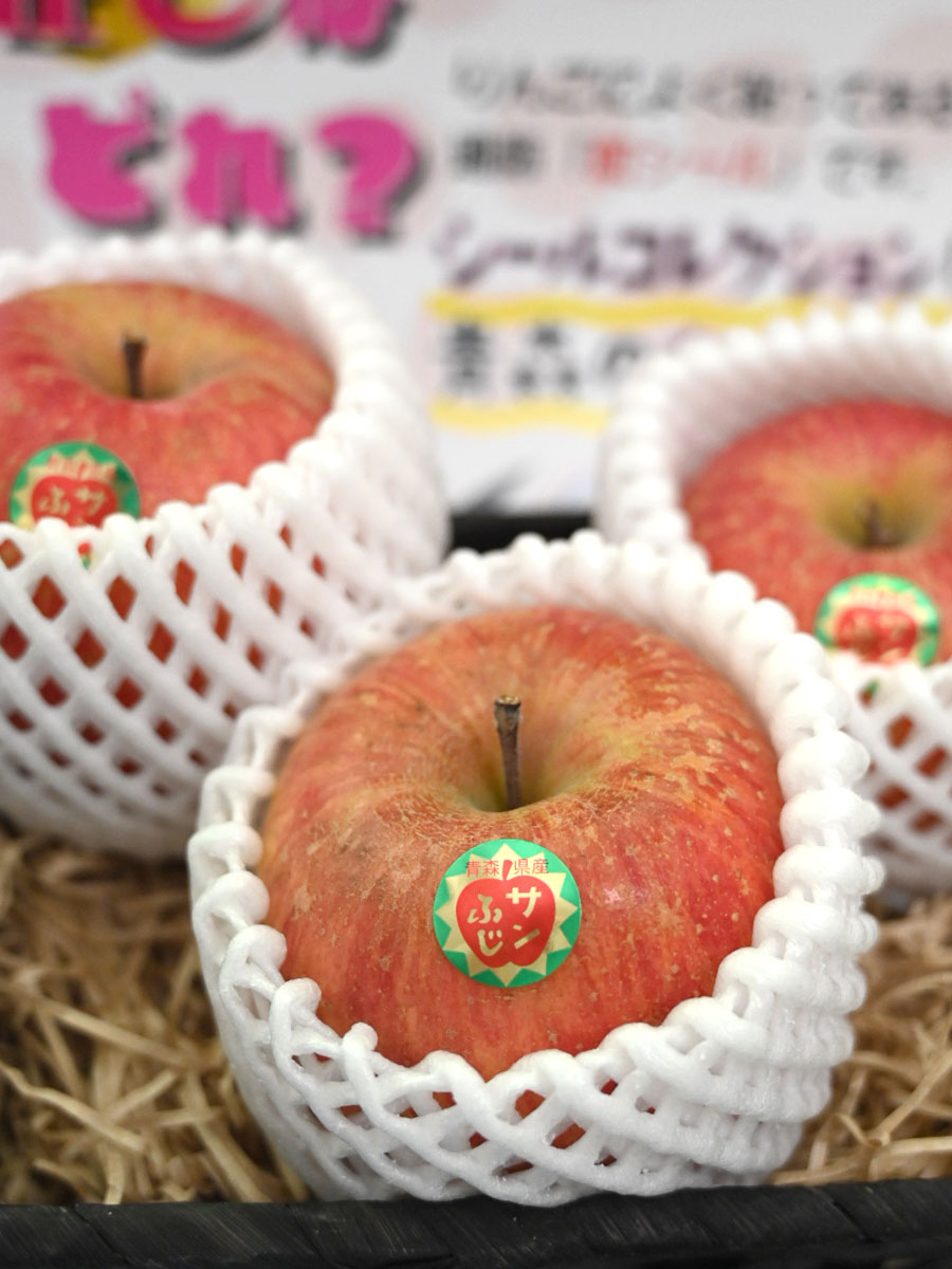 リンゴに貼る「粒シール」